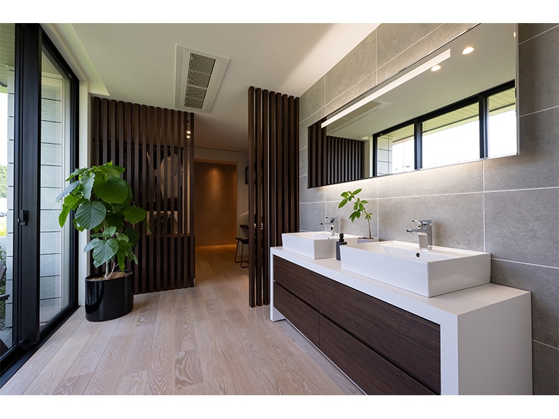 - 間仕切りの上部にルーバーとしての活用も。建具を締めた状態でも通風を確保できます。