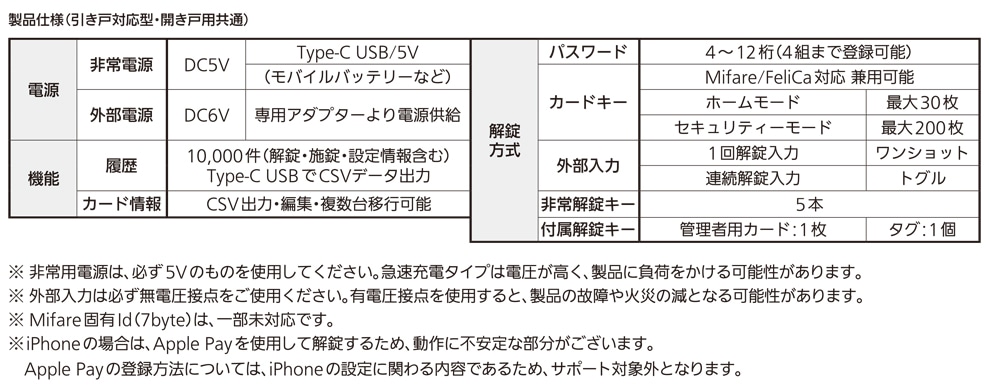 - USBメモリを使って入室の履歴確認や、データ移行が可能。