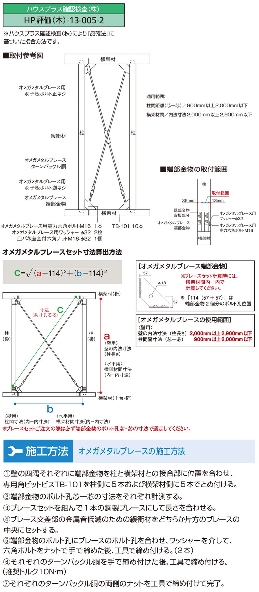 - 1セットにブレース2本(たすき掛け)、端部金具セットが含まれます。