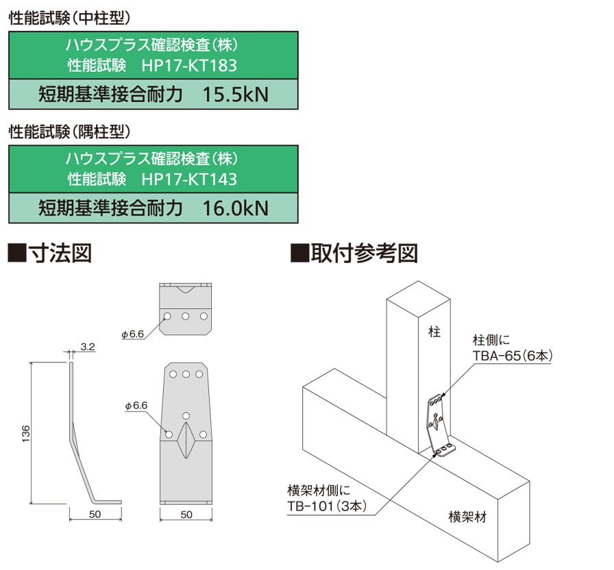 - 横架材側のビス位置が柱面から32mmの位置にあり、取付しやすくなっています。