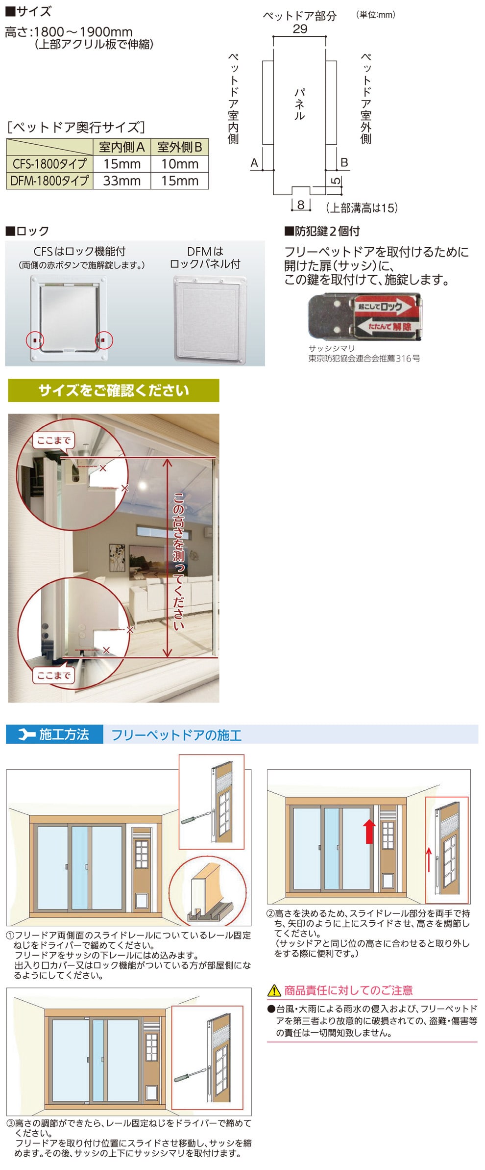 - 付属品:サッシシマリ2個、隙間テープ2m、ロックパネル(DFMのみ)