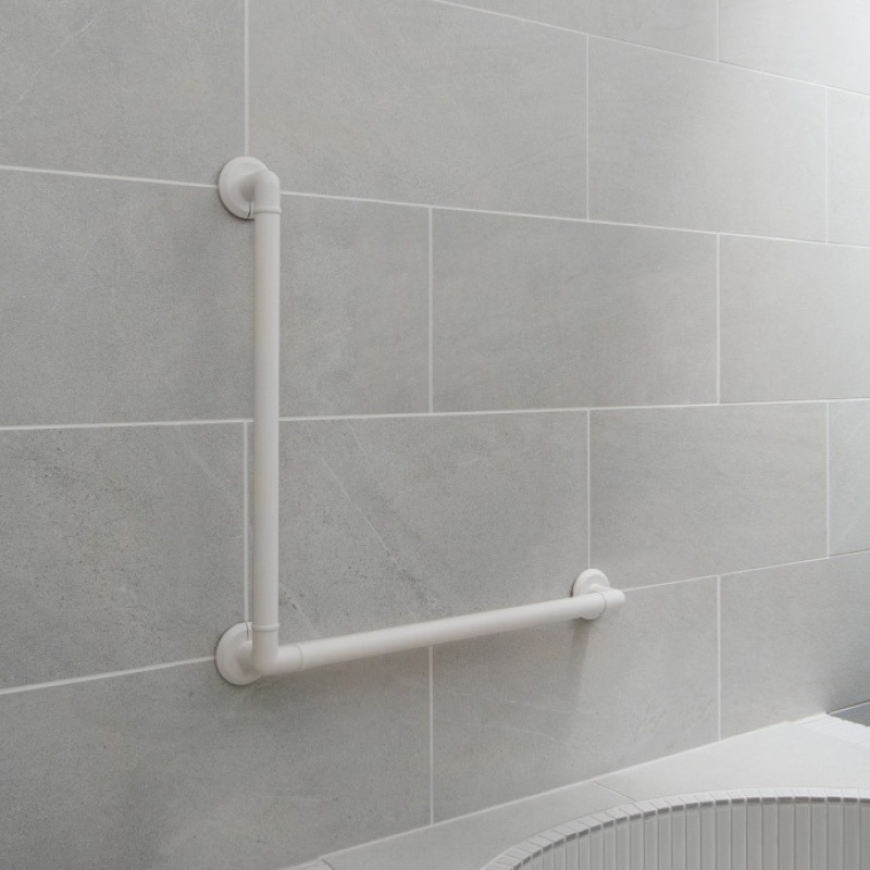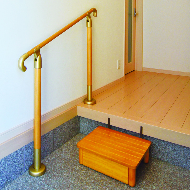 廊下、便所、浴室、玄関から道路までの通路等に転倒予防もしくは移動または移乗動作に資することを目的として設置するもの。(手すりの形状は二段式、縦付け、横付けなど)