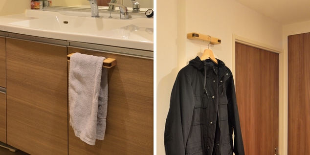 ※手すり以外として使用する場合は、nimone用の石こうボード取付けオプションを別途ご用意いただくことで石こうボードに取付けることができます。 - 収納など、継続的に重さがかかる場合の耐荷重は10kgです。