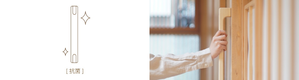nimoneは、抗菌加工を施しており、製品表面の細菌の増殖を抑制します(無塗装品は除きます)。