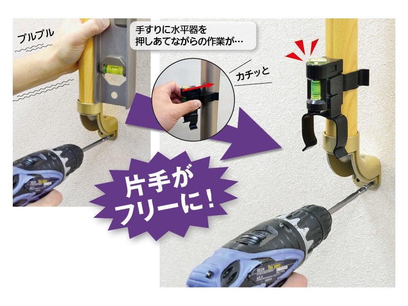 ワンタッチで取付可能な『手すり用水準器』を発売しました。
