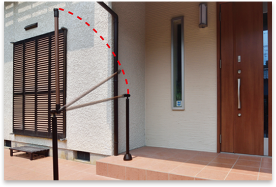 手すり棒は一度曲げると曲げくせがつき、きれいには元にはもどらないため、