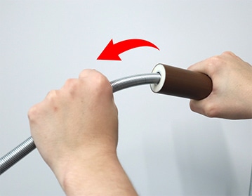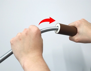 スプリングベンダーを左に回しながら、引き抜く。引っかかる場合は、曲げた箇所を少しだけ元に戻すと引き抜けます。