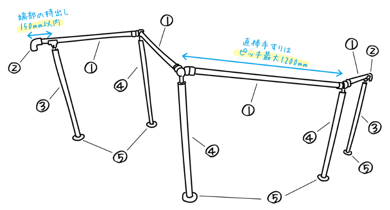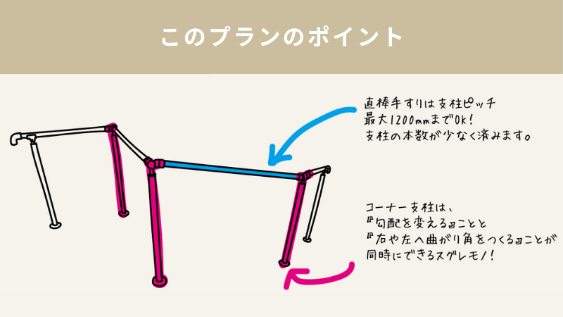 - 手すり棒/木目ナチュラル、支柱/ステンカラー色