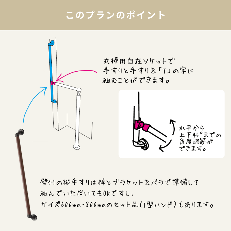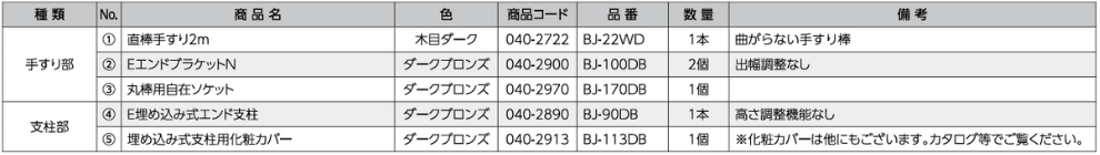 - 手すり棒/木目ダーク、支柱/ダークブロンズ