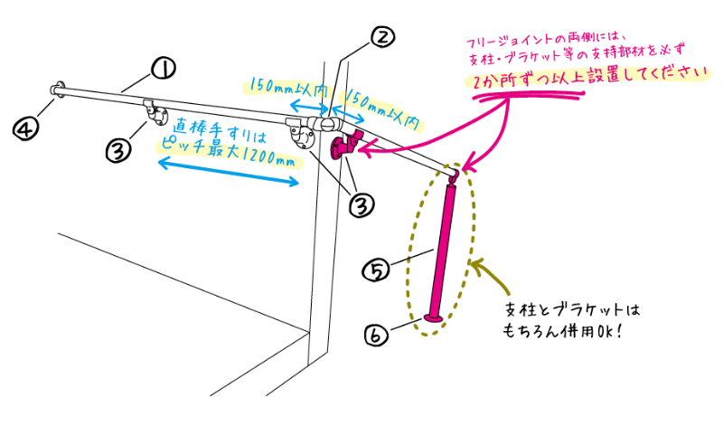 - 手すり棒/木目ダーク、ブラケット/ステンカラー