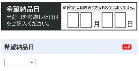 - 年末年始休業期間中のお届けを希望される場合は、「希望納品日」を必ずご入力ください。